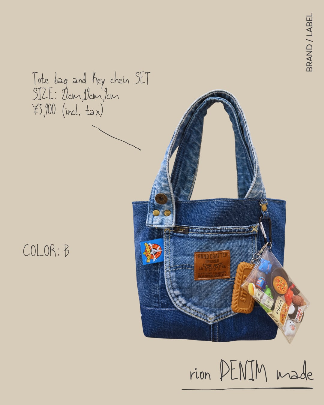 B Set デニムトートバッグ+キーチェーン セット