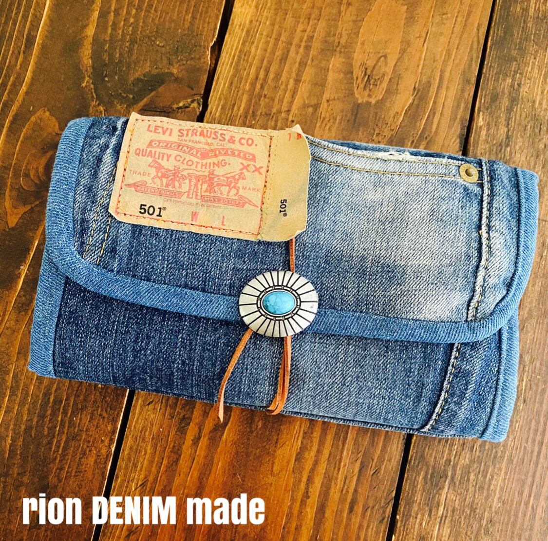 デニム コンチョ付き 長財布
