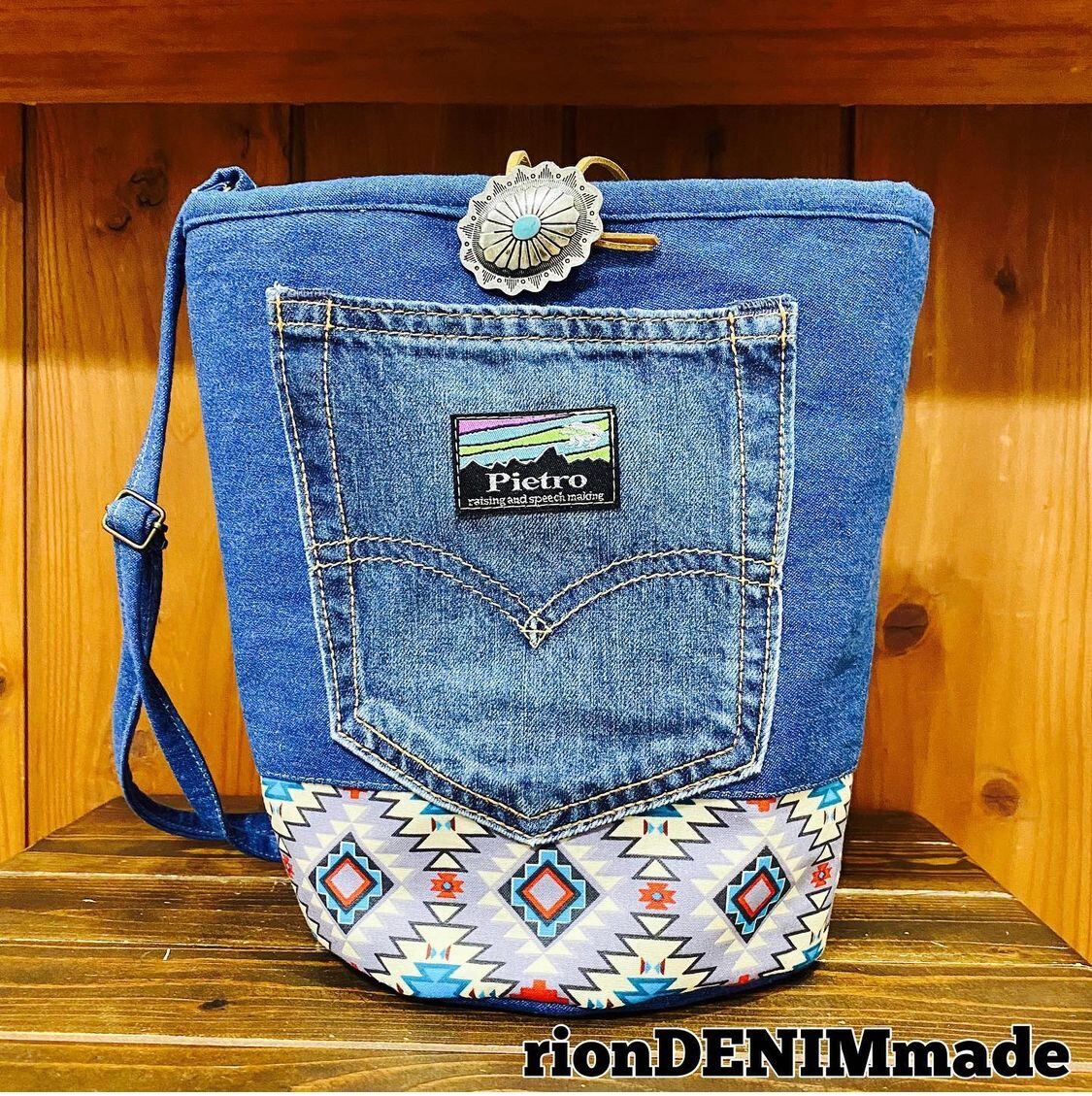 オルテガ柄 デニム バケットバッグ ショルダーバッグ