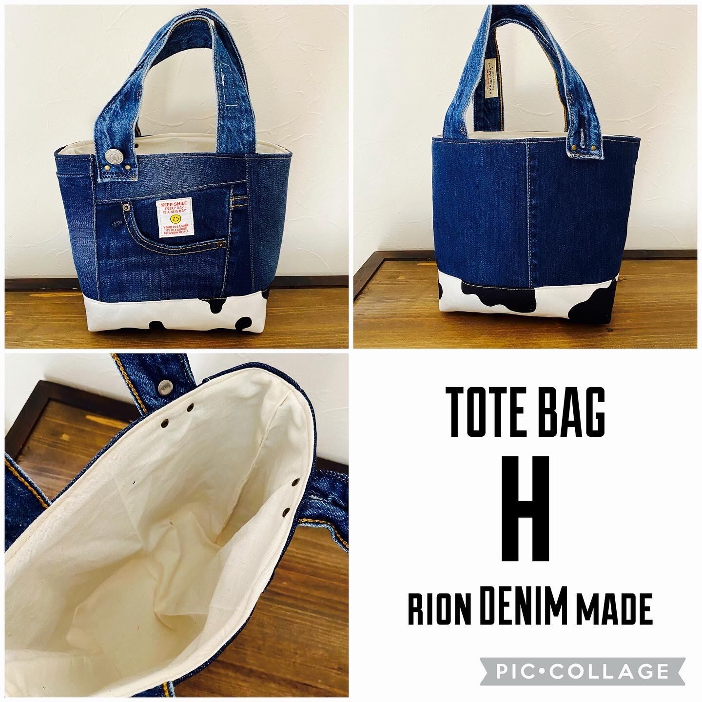 デニム 牛さん 持ち手がかわいい トートバッグ ハンドメイド