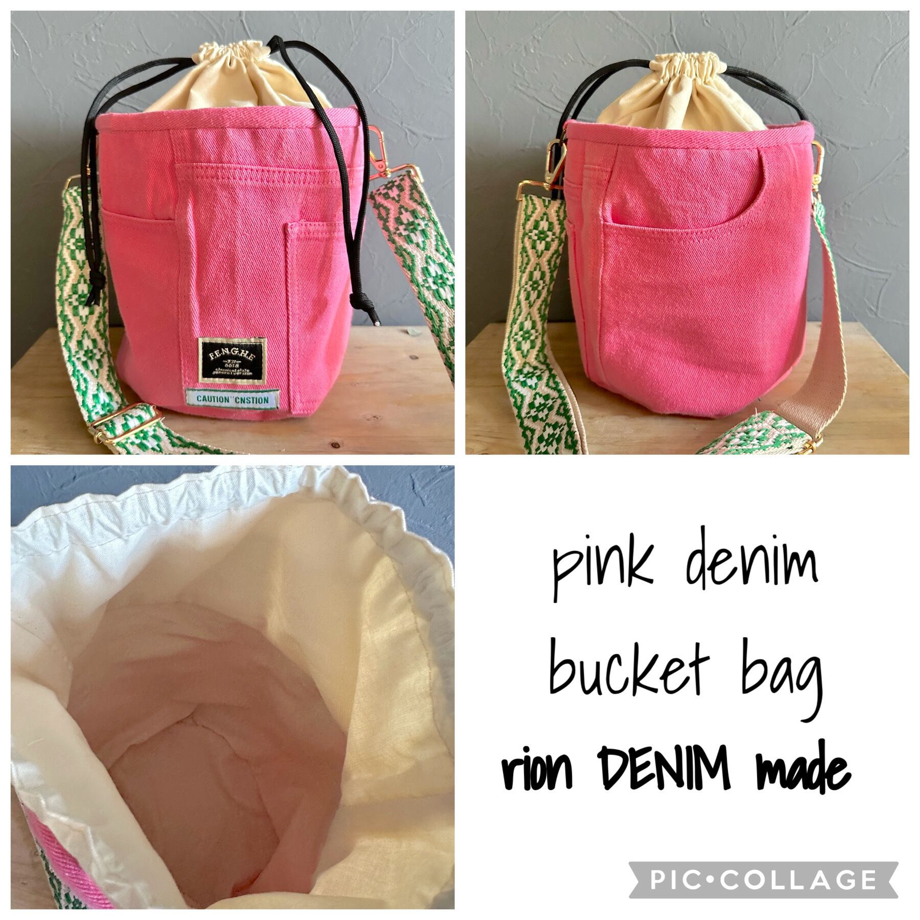 ピンクデニム バケツバッグ