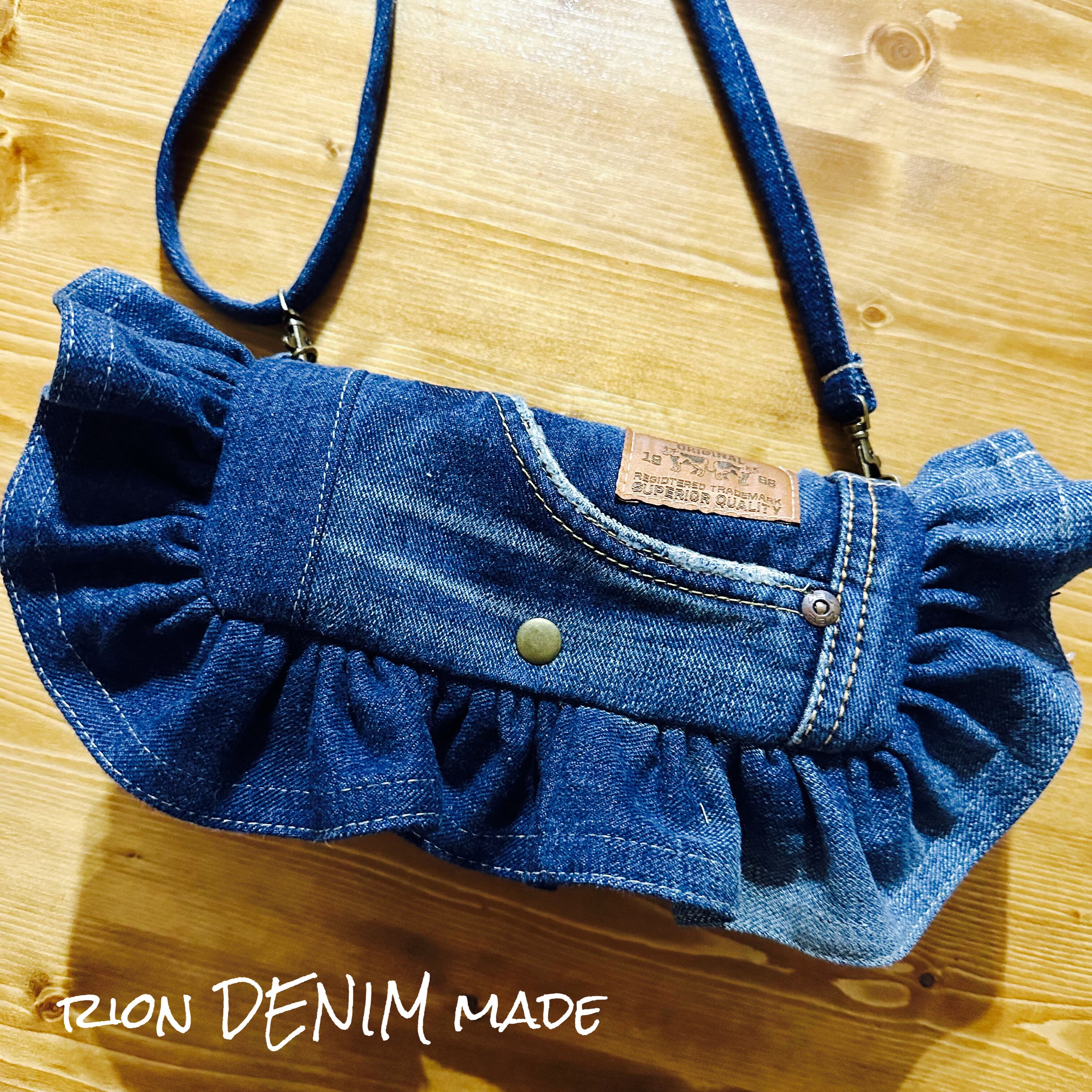 デニム フリルショルダーウォレット 長財布 ショルダーバッグ