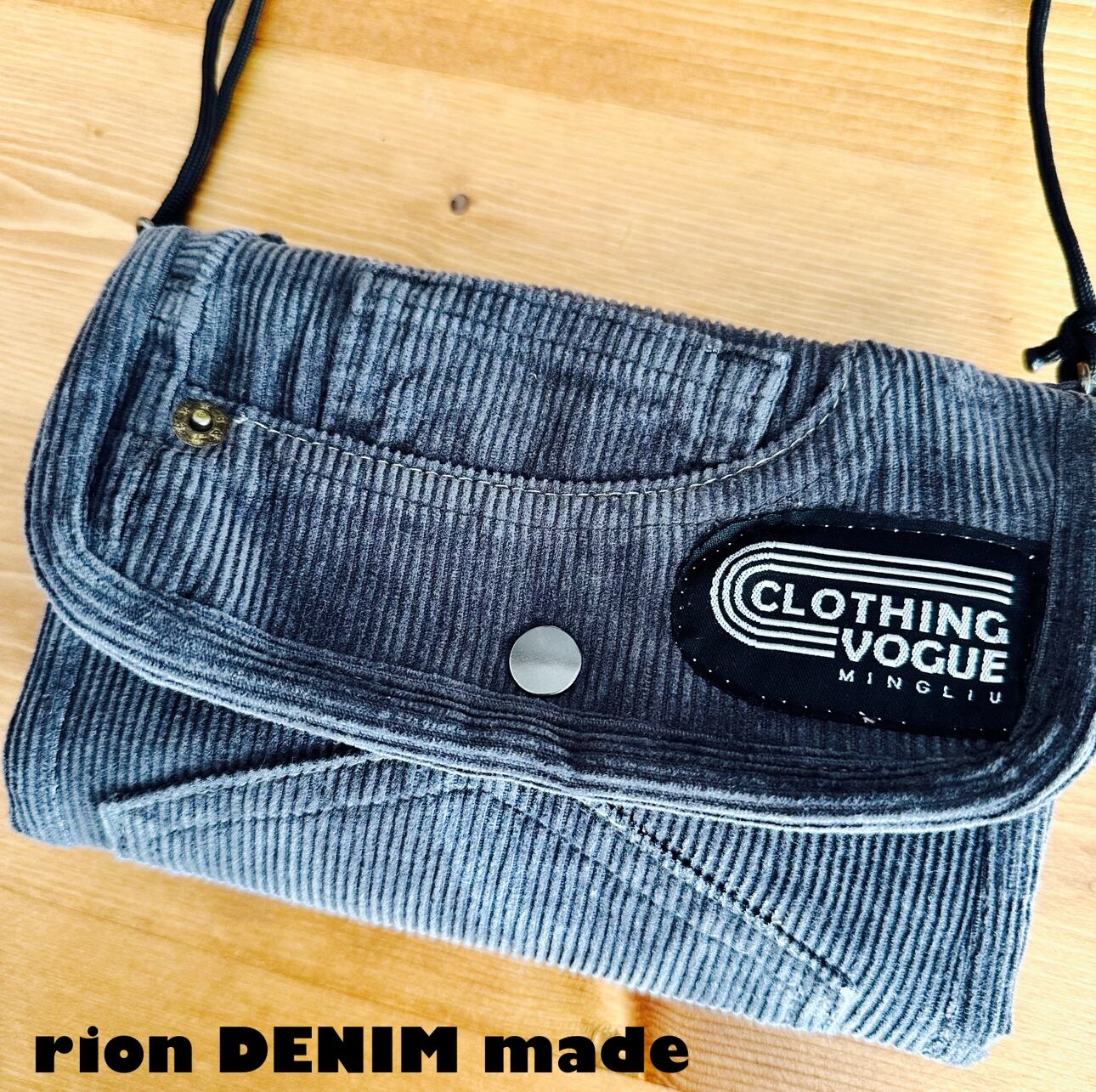 ブラックコーデュロイ ミディアムショルダーウォレット