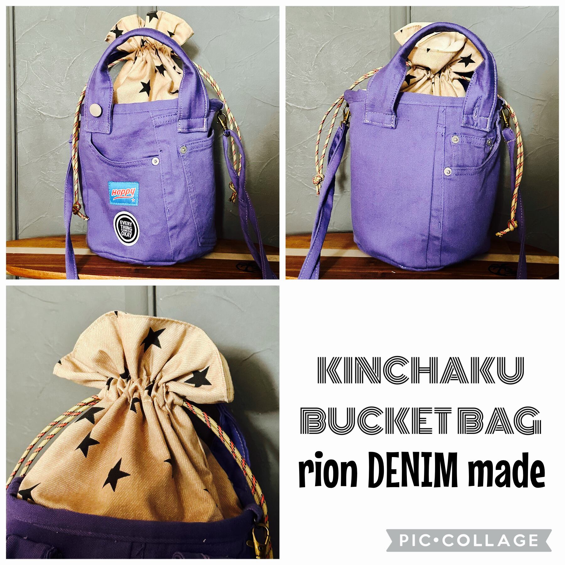 巾着バケツバッグ パープルデニム