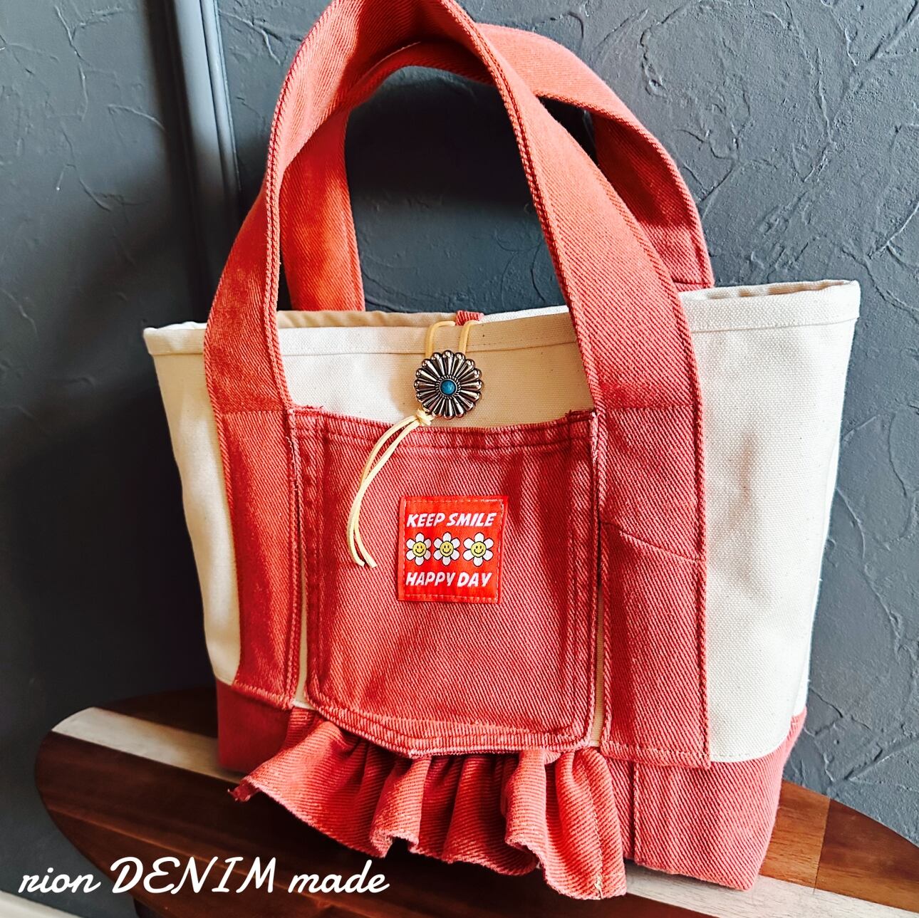 ピンクデニム キャンバス フリル トートバッグ