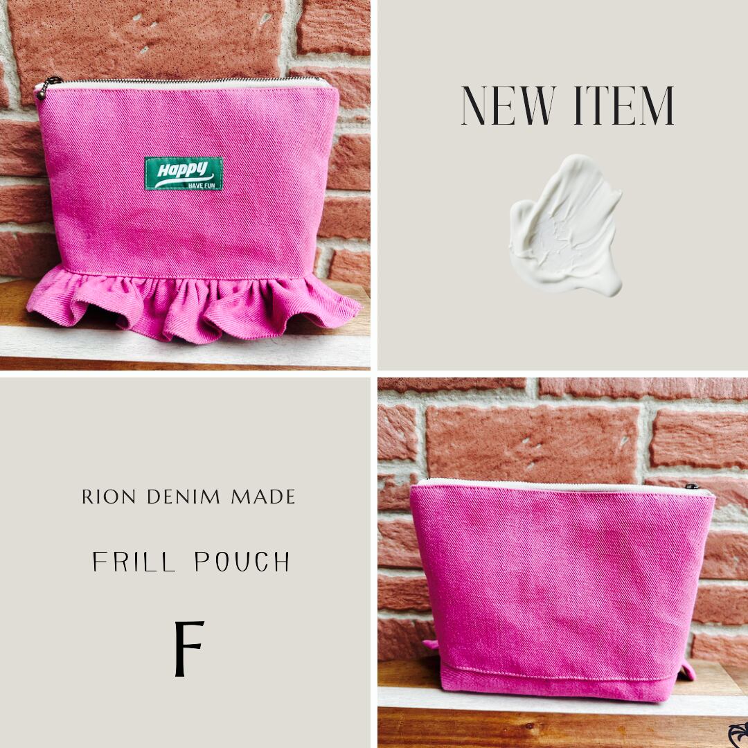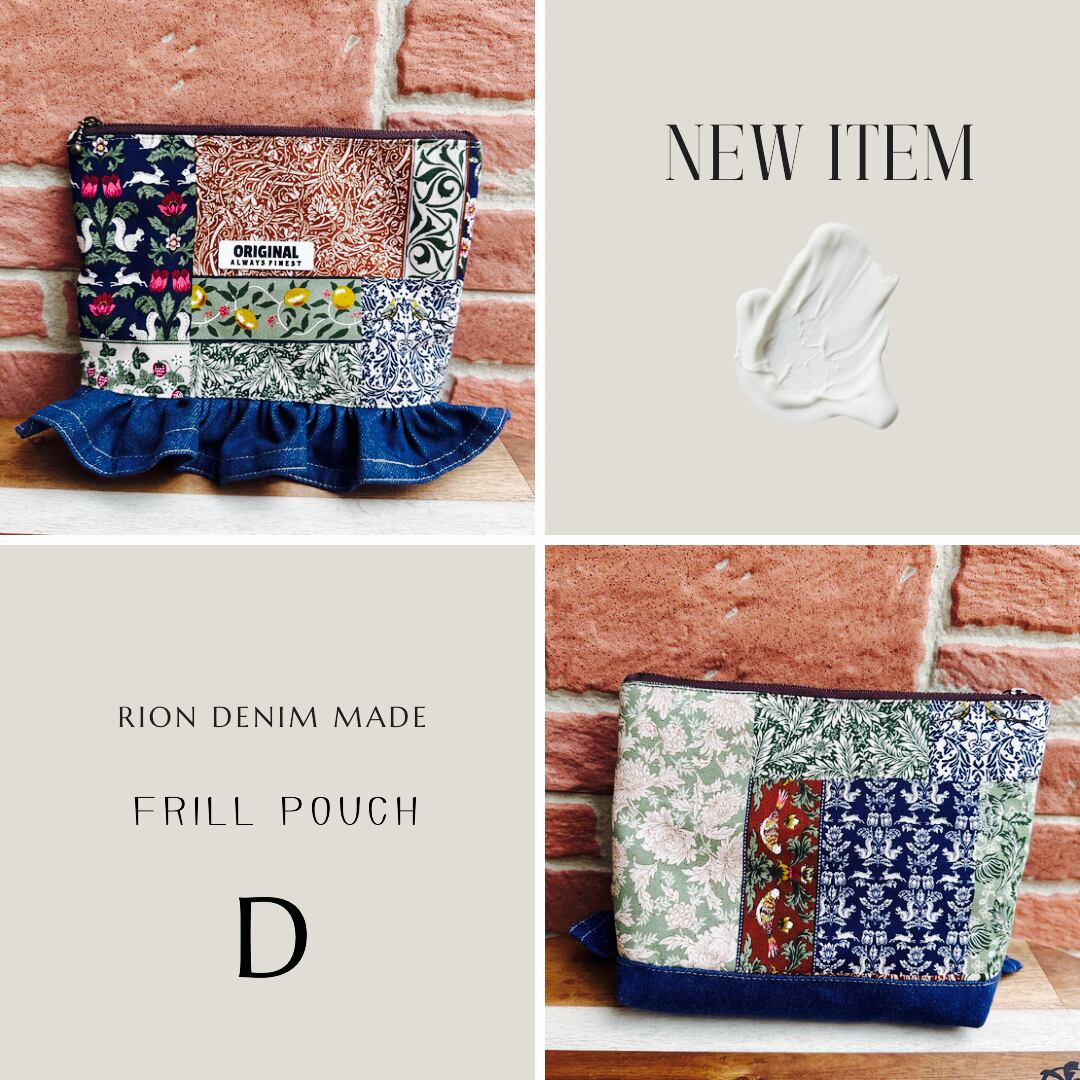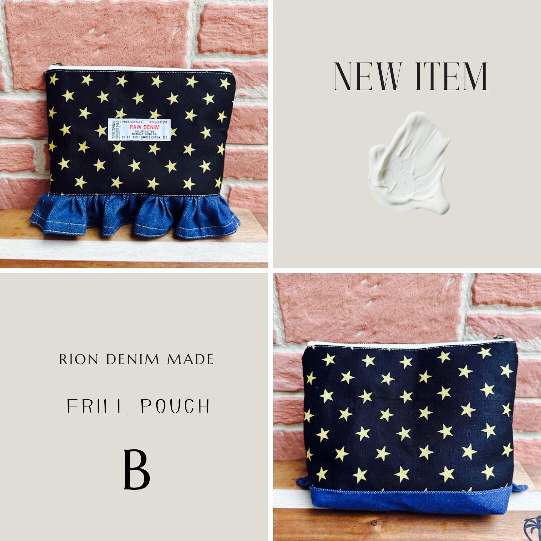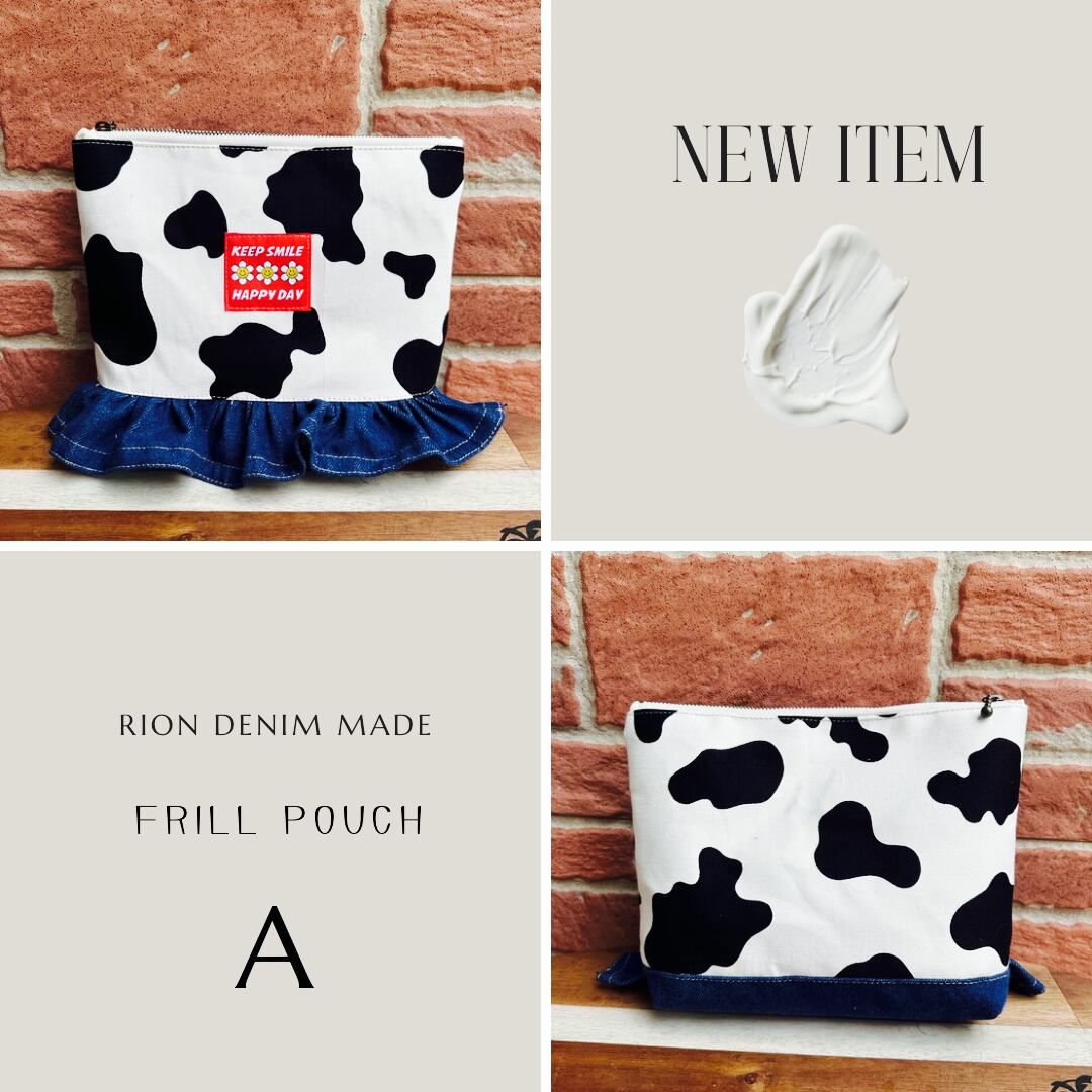 フリルポーチ デニムリメイク 牛柄 星柄 リス柄