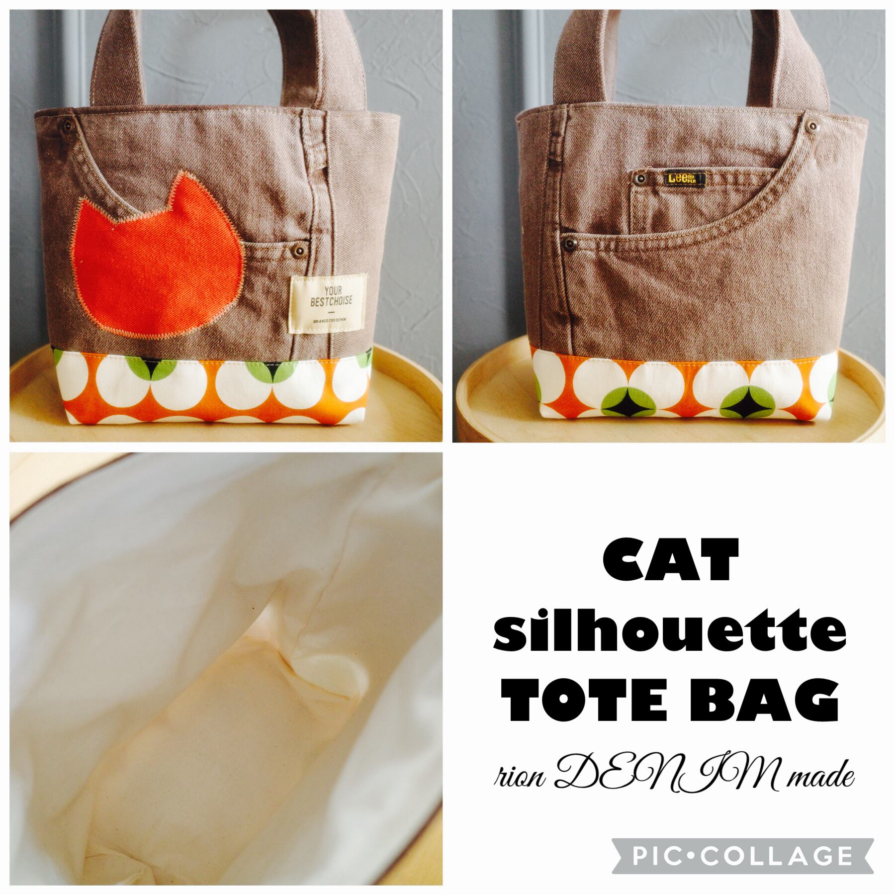 ネコちゃんシルエット トートバッグ レトロ柄