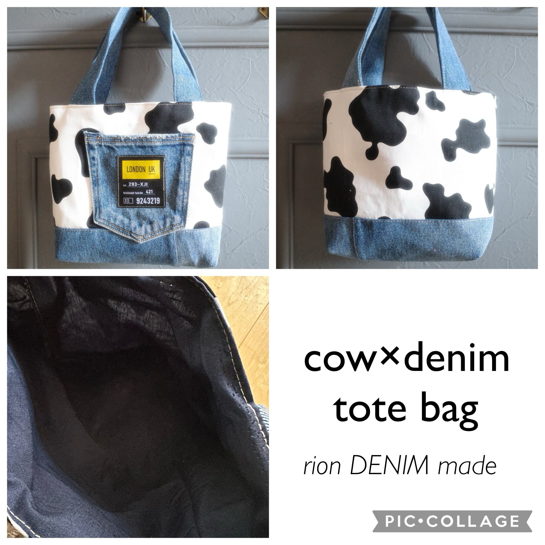 牛柄×デニム トートバッグ